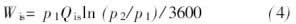 式中, Wis為該入口壓力時泵的等溫壓縮功率, 單位為KW, 其中, 等溫壓縮功率Wis的計算公式為