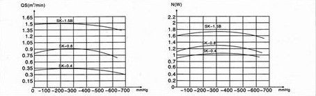 六、SK型直聯水環式真空泵的性能曲線圖: