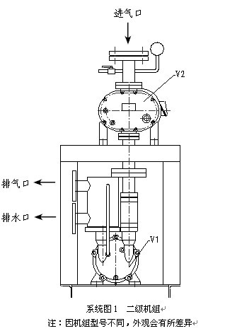 羅茨水環真空機組的主泵為V2型羅茨真空泵,由V1型液環真空泵作為前級泵(如系統圖1),為保證各泵的正常運轉,應按以下程序操作: